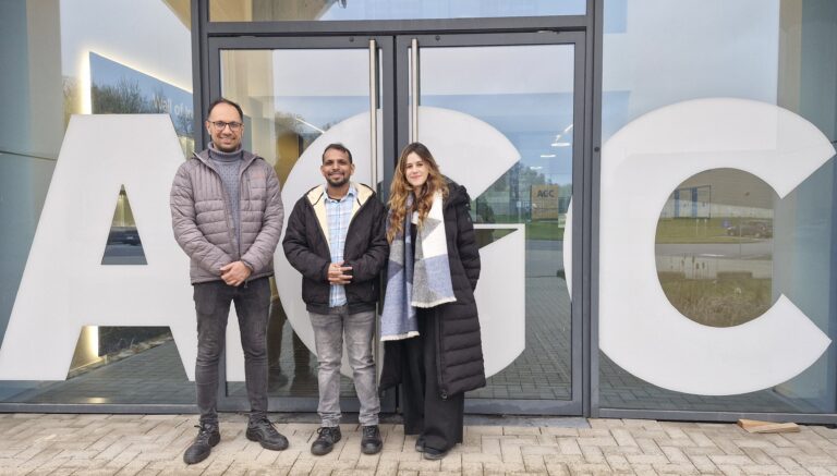 From left, Dr. Xavier Laloyaux, Dr. Hugues Wiame, Dr. Rajesh Mundotia, Dr. Philippe Roquiny, Dr. Omid Sharifahmadian and Dr. Rebeca Correia after a very productive discussion at AGC Technovation Centre, Charleroi, Belgium.