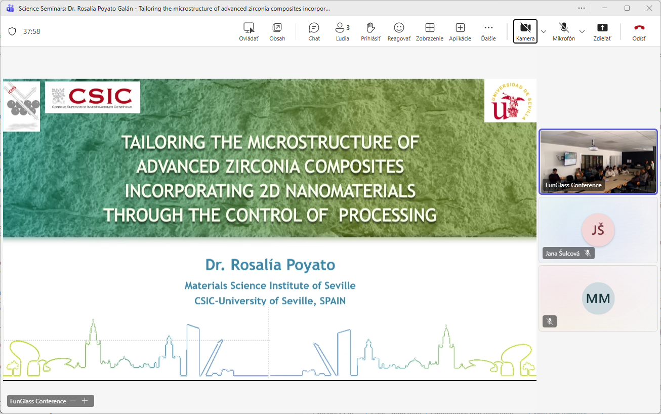 The FunGlass Centre, Alexander Dubček University of Trenčín recently hosted a series of scientific seminars led by Dr. Rosalía Poyato, a Senior Research Scientist from the Materials Science Institute of Seville.